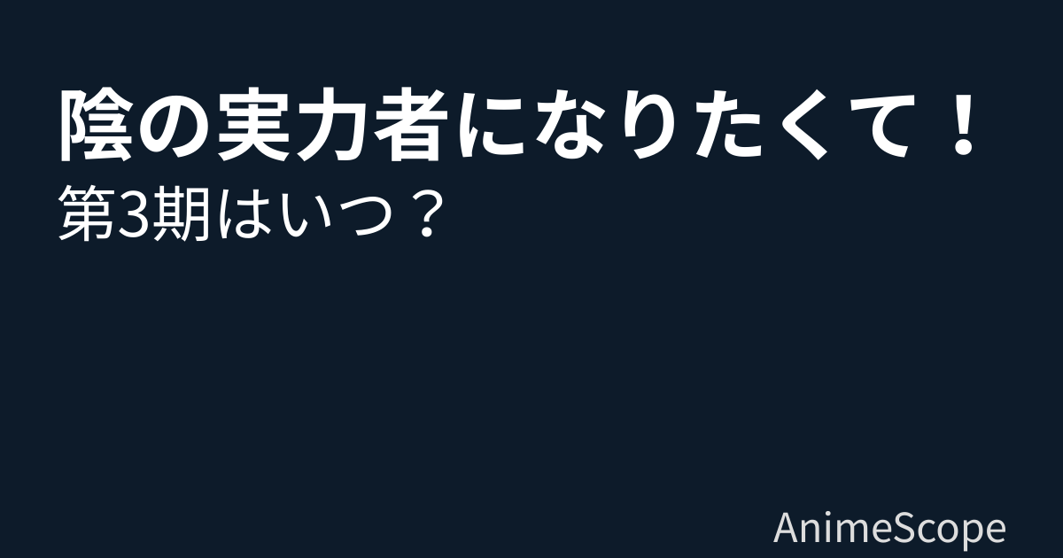 🟦 ■ 結論:『陰の実力者になりたくて!』第3期は制作される可能性が高い 現時点(2025年)、『陰の実力者になりたくて!』第3期の正式発表はありません。 しかし 第3期制作の可能性は非常に高い と言えます。 理由は以下の通り。 原作ストックが十分にあ... -