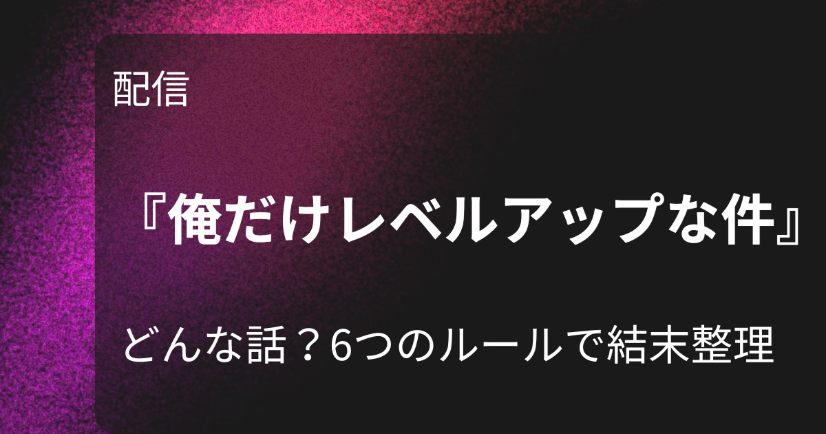 「俺だけレベルアップな件はどんな話?」と聞かれて、ひと言で説明できますか。 あらすじや水篠旬、システム、影の君主、架南島レイド、最終回ネタバレなどが絡むので、断片だけ拾うと逆に混乱しがちです。 この記事では、ゲートとハンターの世界観、最弱... -