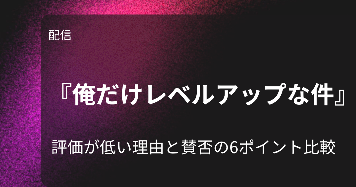 俺だけレベルアップな件の評価が低い理由で検索しているあなた。 つまらないのか、面白いのか、アニメ化が原因なのか…意見が割れすぎて、逆に判断できなくなっていませんか。 この記事では、批判ワードの表面ではなく「その言葉が指している中身」を整理し... -