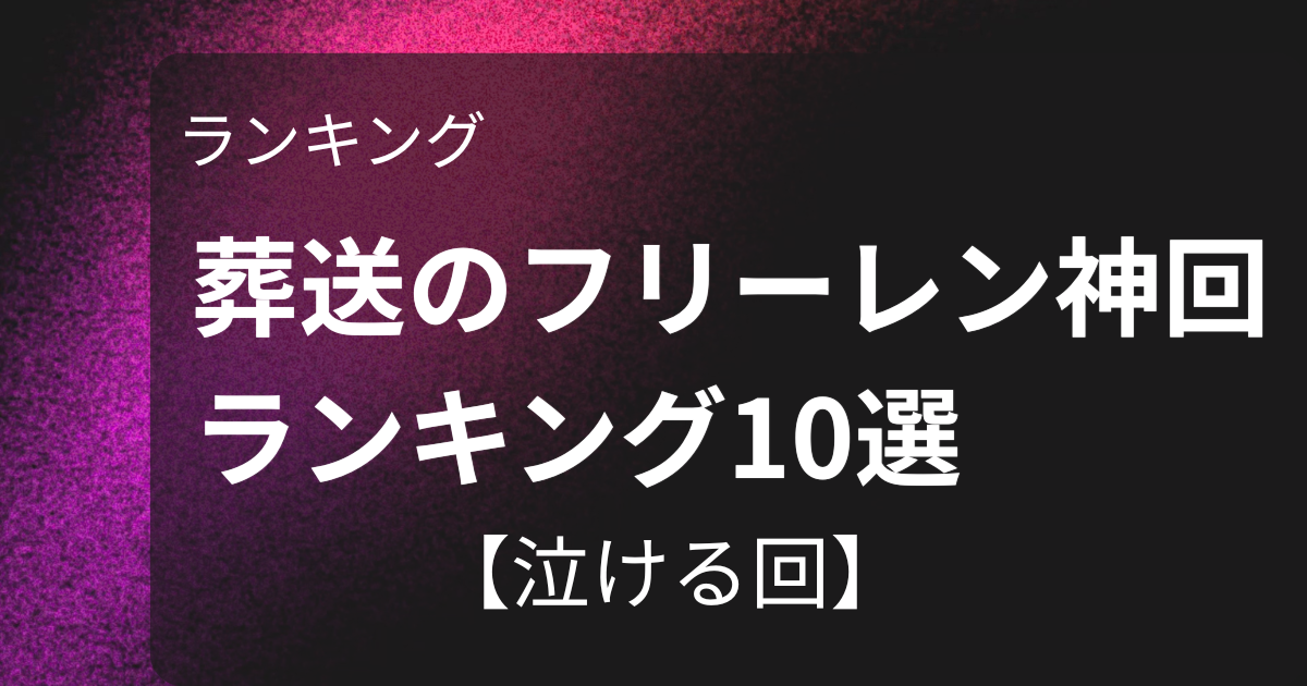 特に上位の回は、物語全体を追っているほど重みが増します。神回ランキングを見てから本編に入るのも、見終わったあとに振り返るのも、どちらでも満足度が高い作品です。