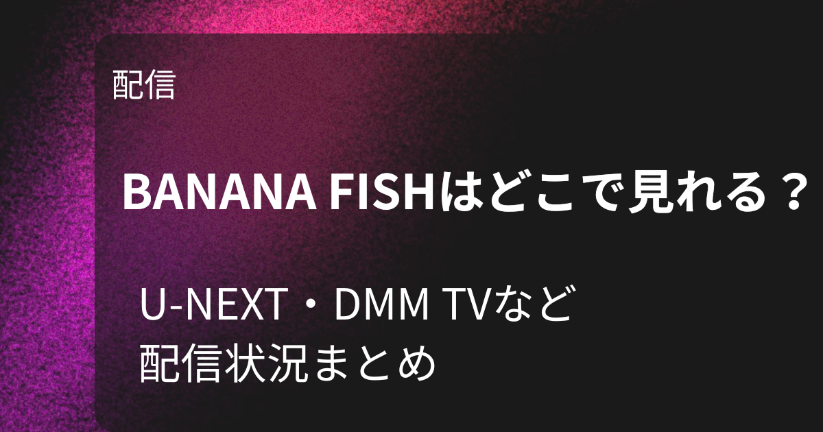 BANANA FISHは、U-NEXT・DMM TV・FOD・ABEMA・Huluなどで見られます。結論からいうと、まず安く見たいならDMM TV、見たあとに原作まで追いたいならU-NEXTが向いています。 BANANA FISHを今すぐ見るなら、候補はU-NEXTかDMM TVで考えれば大丈夫です。 視聴... -