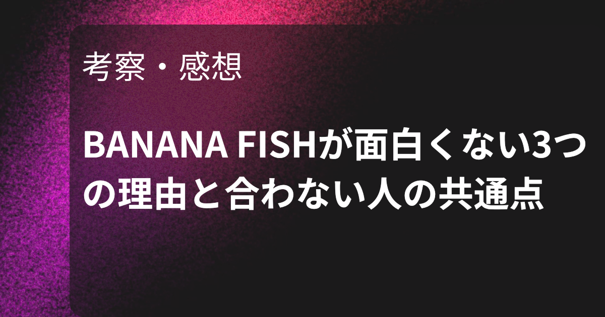 結論からいうと、BANANA FISHが面白くないと感じる人がいるのは自然です。 この作品は、わかりやすい爽快感や軽い楽しさで押すタイプではなく、暴力、孤独、支配、喪失感まで正面から描く作品だからです。 そのため、軽く見られるアニメを探している人や、... -