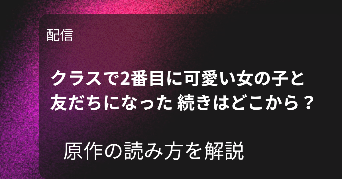 クラスで2番目に可愛い女の子と友だちになった 続きはどこから?原作の読み方を解説