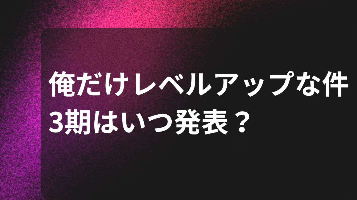 俺だけレベルアップな件の3期はいつ来るのかについて、現時点の最も正確な答えは放送日は未発表です。